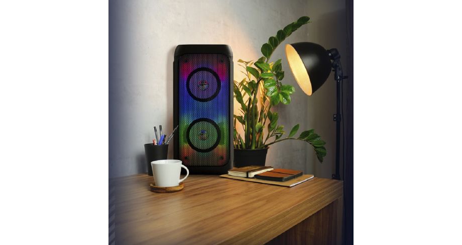 Parlante Bluetooth con tecnología TWS y bateria recargable.