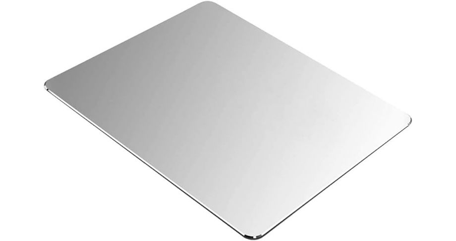 Alfombrilla de mouse dura, alfombrilla de mouse de doble cara de metal de aluminio, suave, ultrafina, impermeable, para oficina y juegos, control rápido y preciso para laptop, computadora (plateado, rectangular, 9.449 x 7.087 in)
