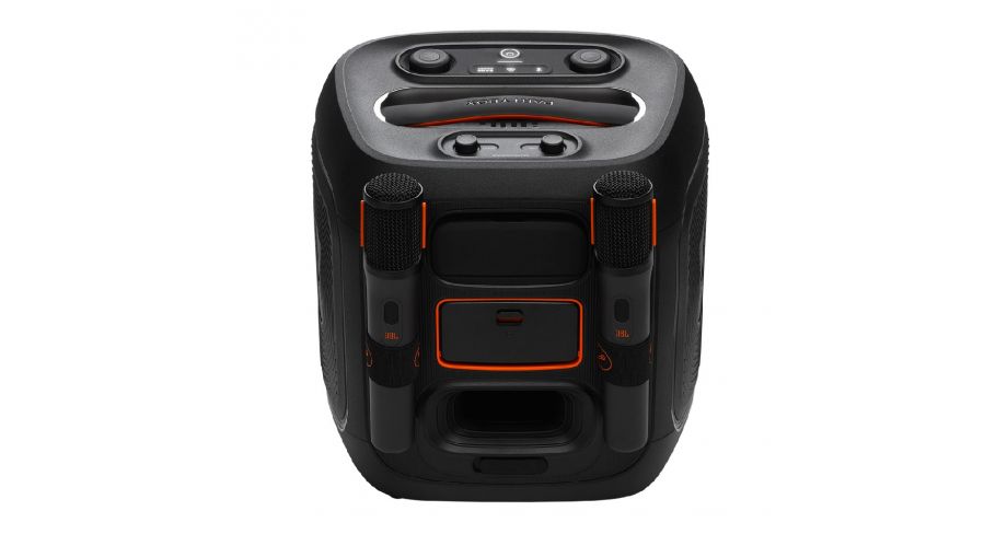 Para quienes disfrutan cantar, el micrófono inalámbrico digital transforma el JBL PartyBox Encore 2 en una máquina de karaoke. Con controles de eco, graves y agudos ajustables, tendrás total libertad para adaptar el audio a tu estilo. Y si quieres llevar la diversión a otro nivel, conecta una guitarra a la entrada dedicada con ganancia previa y control de volumen individual: ideal para presentaciones en vivo.