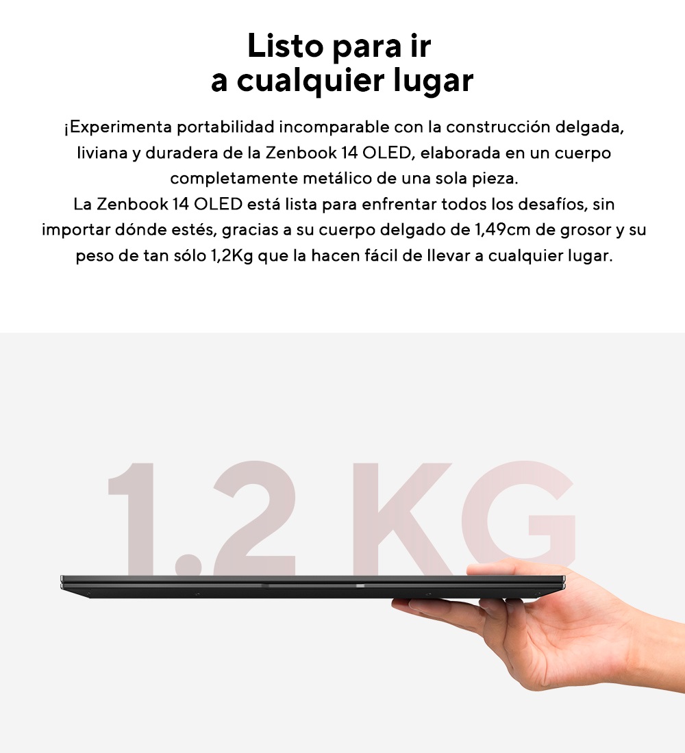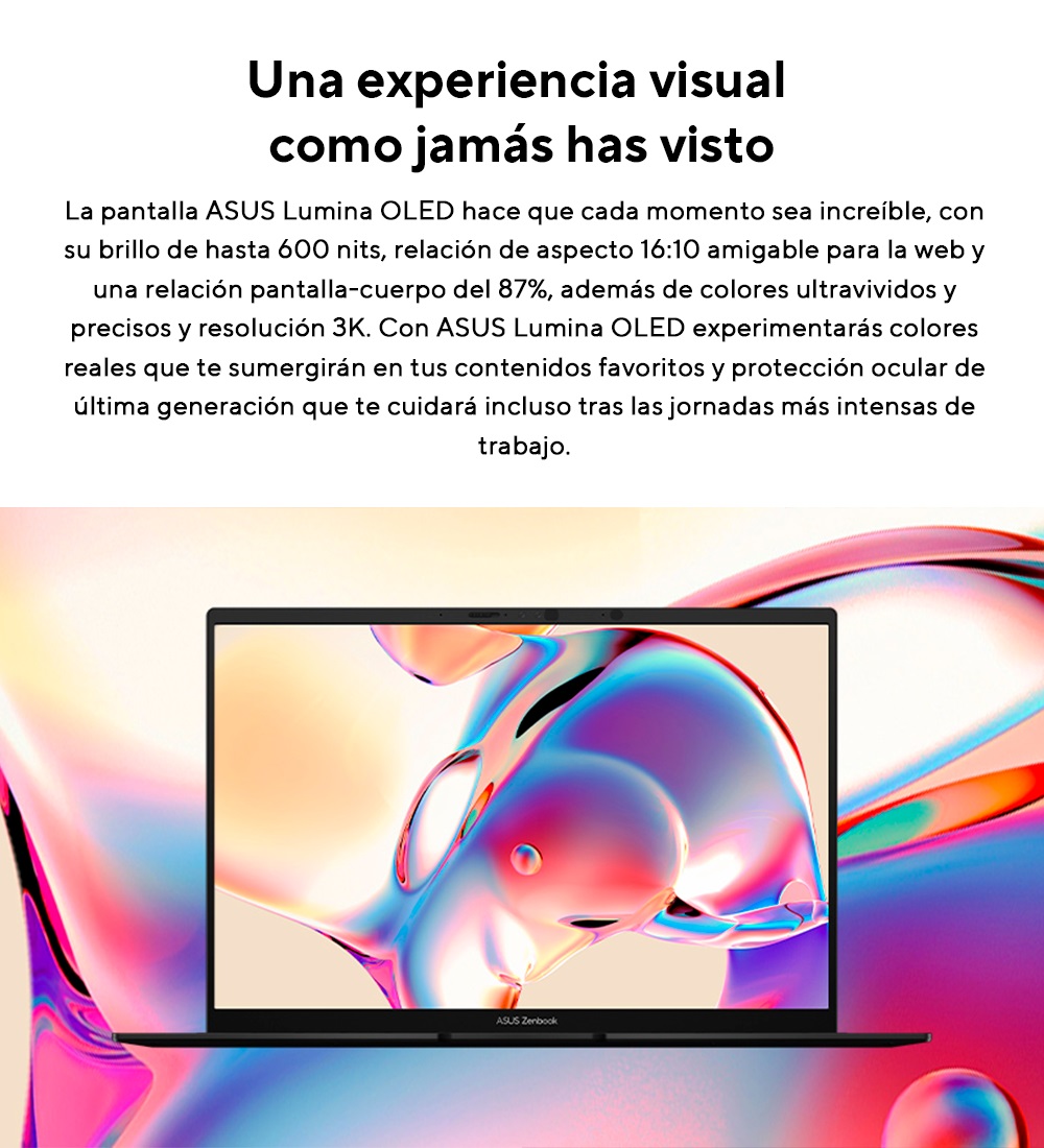 OLED de 14 pulgadas con resolución WUXGA (1920 x 1200), relación de aspecto 16:10 y tasa de refresco de 60 Hz.