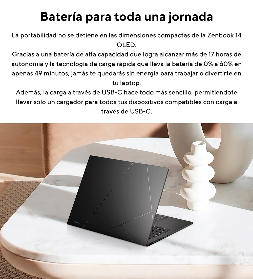 NOTEBOOK ASUS ZENBOOK 14 OLED UM3406KA-QD092W IA R7-350/16GB/1TB/ESP/BLACK (ENT. 24 A 48HS)