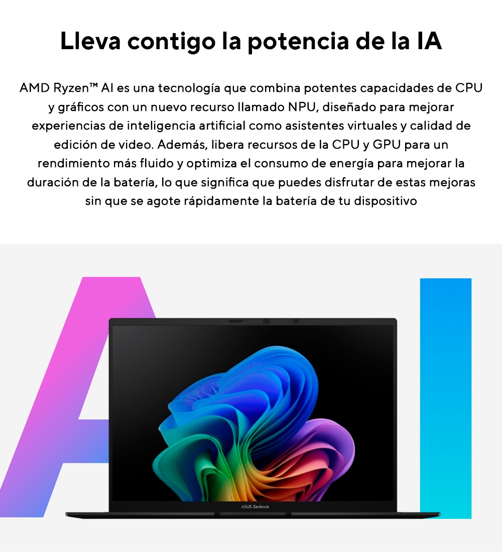 (Octa-core, hasta 5.0 GHz) con unidad de procesamiento neural (NPU) de hasta 50 TOPS para tareas de IA.
