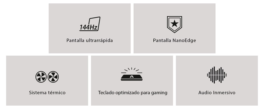 IPS de 15.6" FHD (1920 x 1080), 144Hz, antirreflejo, sRGB 62.5%
